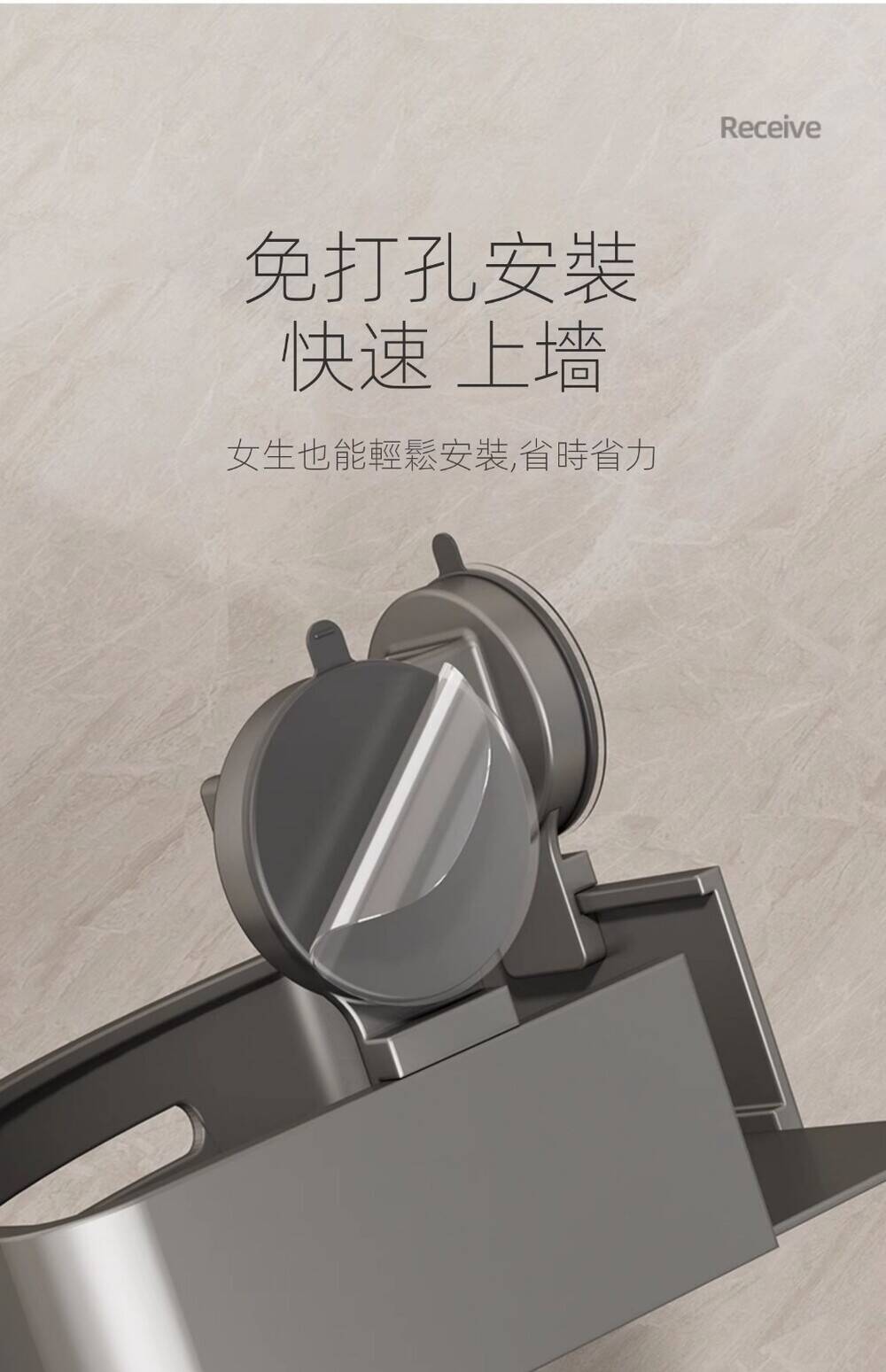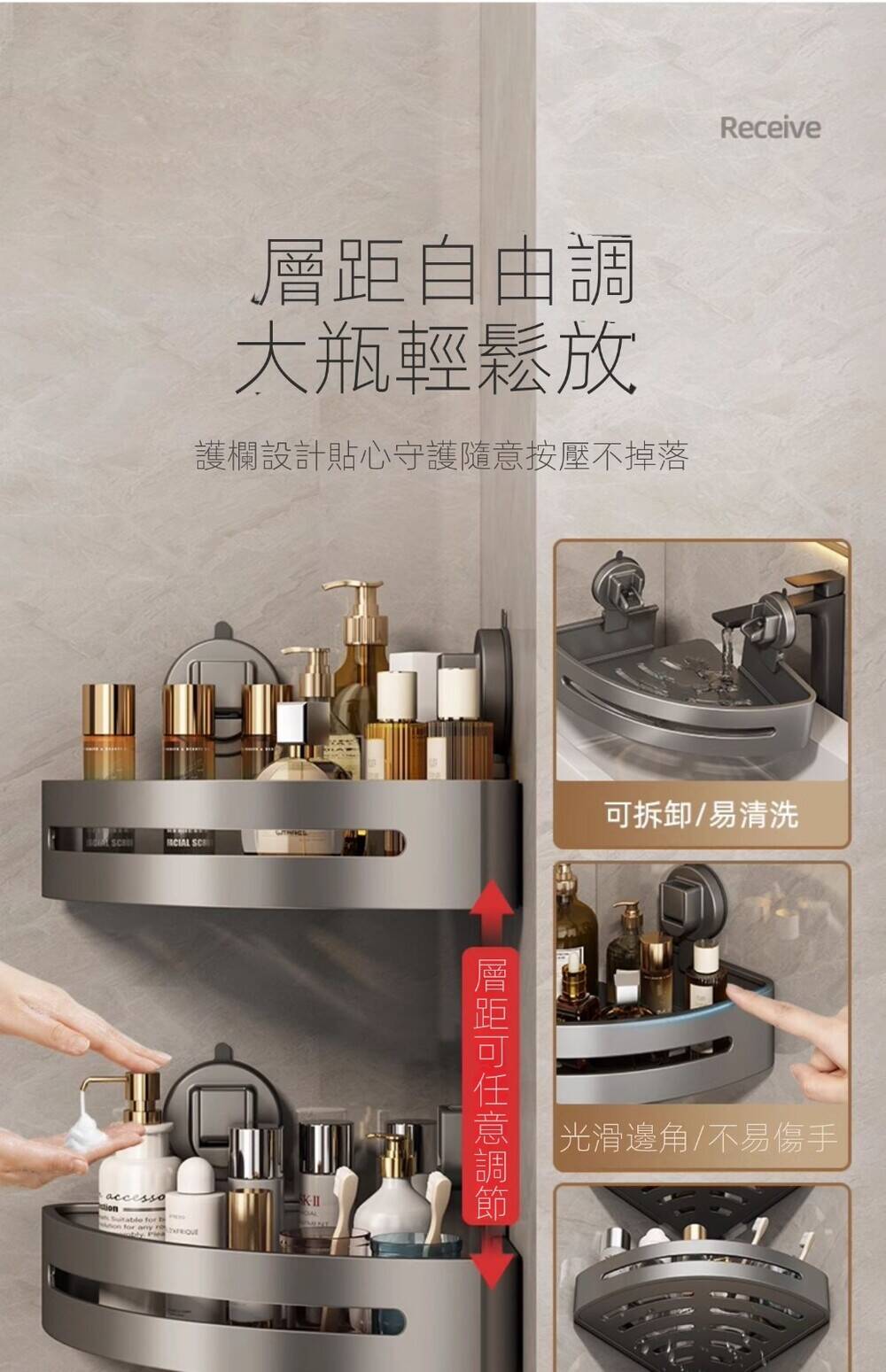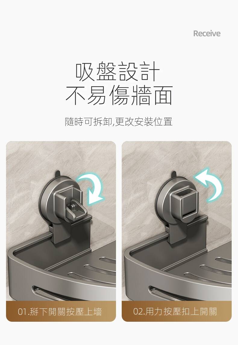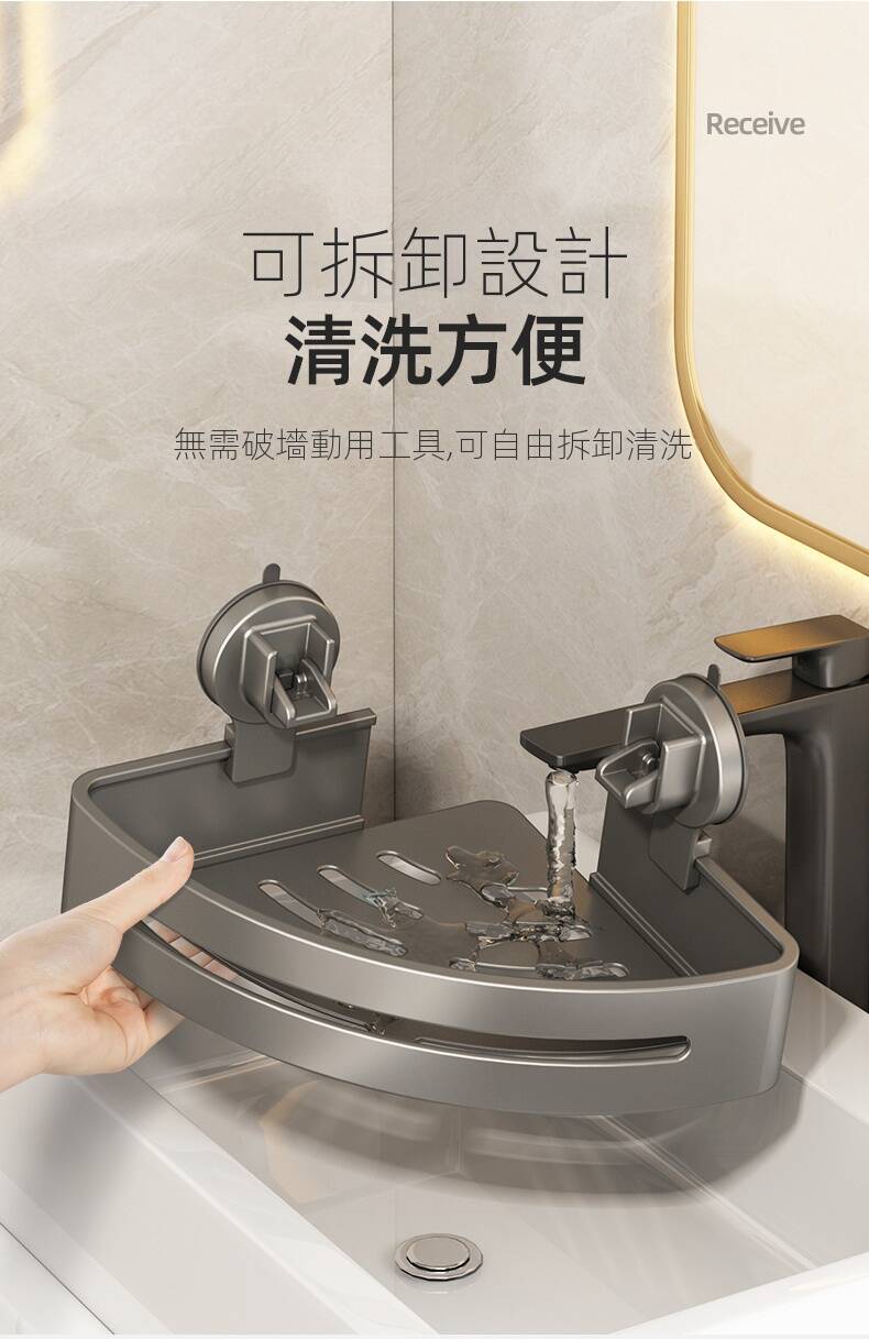 15分鐘前自帶吸盤,可隨時移動重復使用的置物架 免打孔廚房浴室衛生間三角置物架多用途壁掛收納架毛巾架 - 【超夯下殺】買一送二,共三入組 NT$998