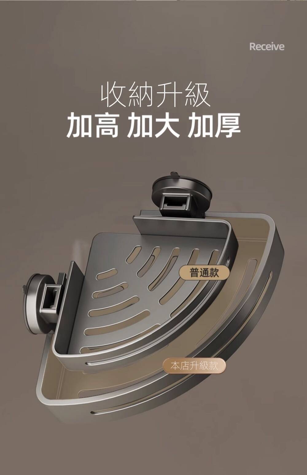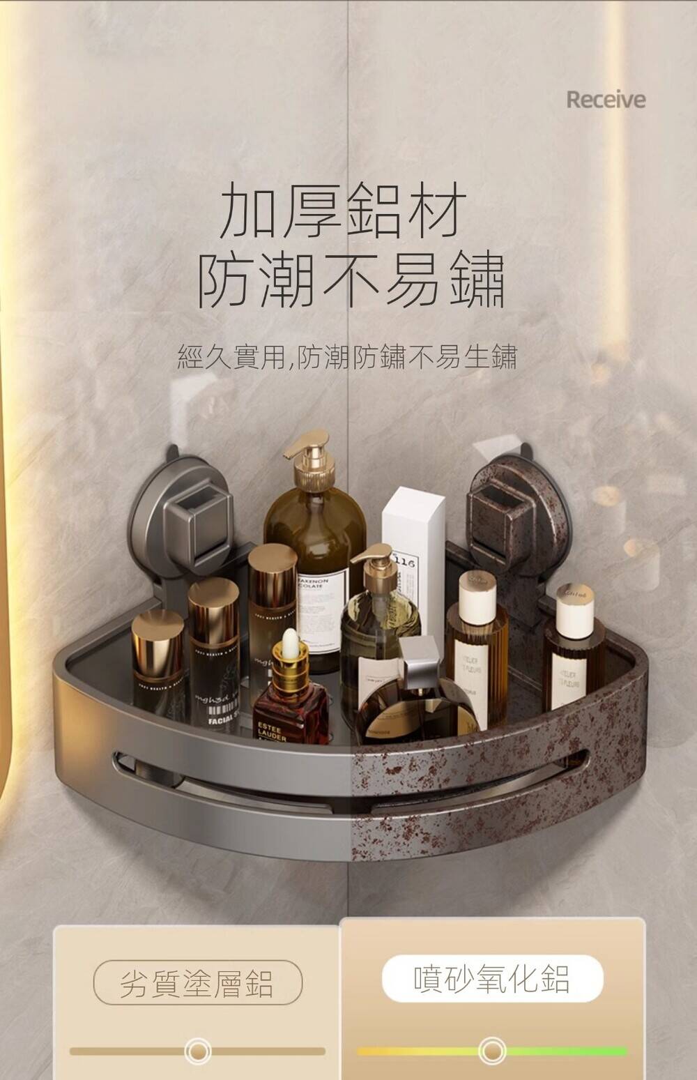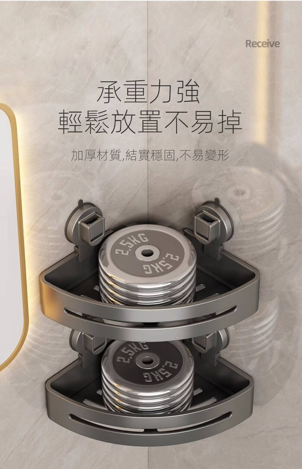 15分鐘前自帶吸盤,可隨時移動重復使用的置物架 免打孔廚房浴室衛生間三角置物架多用途壁掛收納架毛巾架 - 【超夯下殺】買一送二,共三入組 NT$998