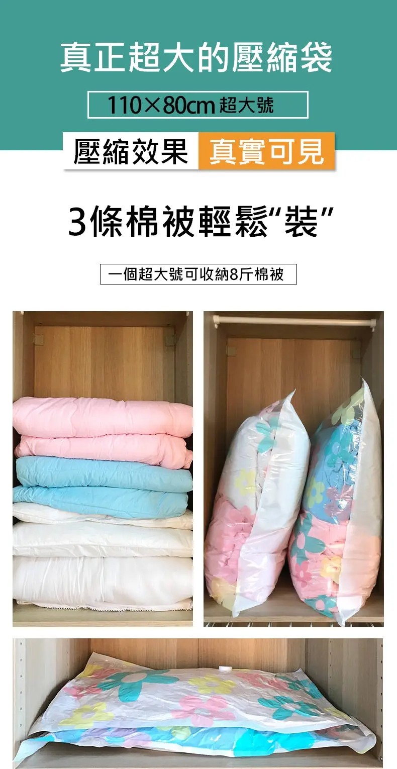 25分鐘前【居家神器】被子衣物整理真空壓縮收納袋+配電動氣壓手泵 - 特惠3入組,共33件套+電動抽氣泵*3 NT$1598