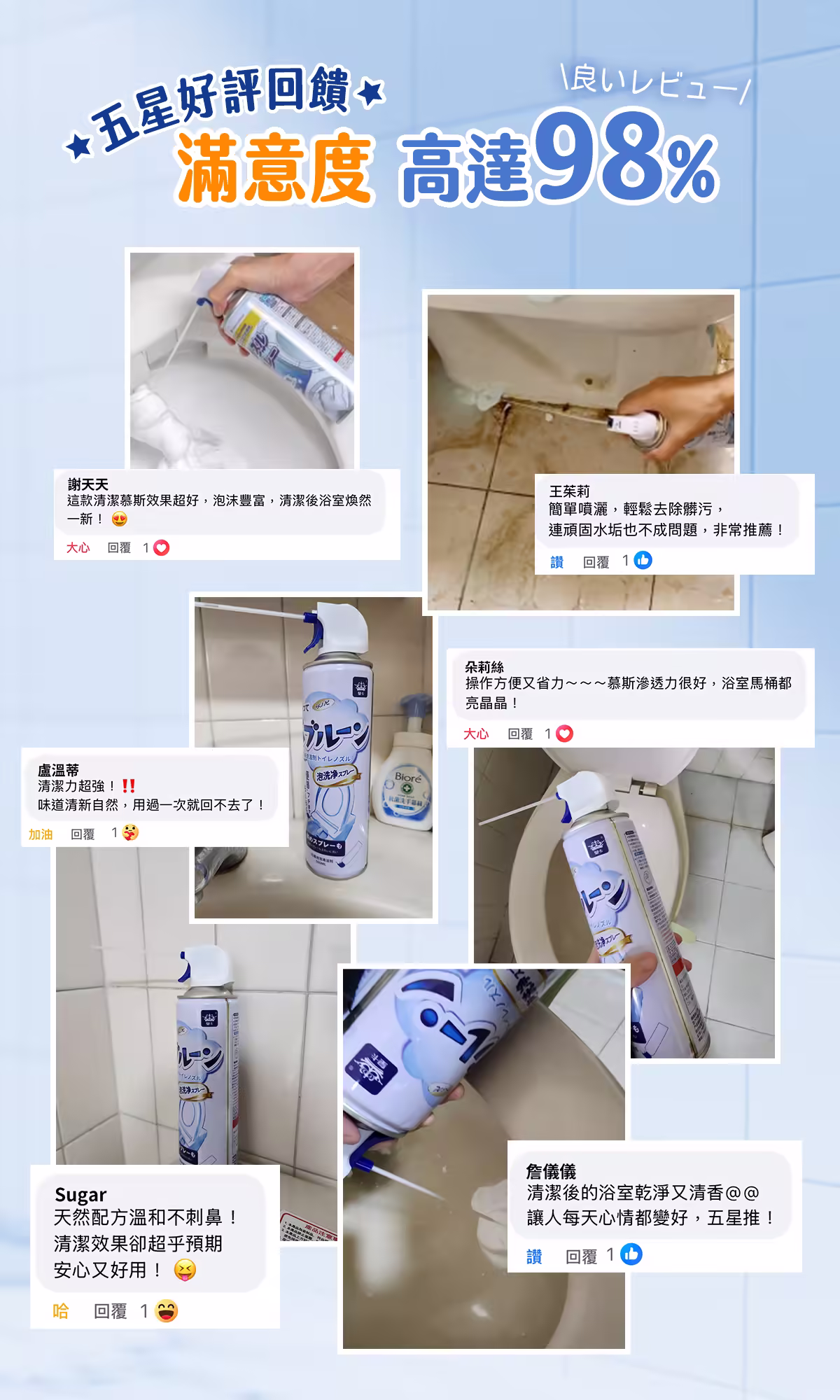 2分鐘前媽咪團購第三彈開跑!#雪泡淨浴廁清潔慕斯 馬桶不刷也能亮 ! 浴室清潔一瓶搞定! - 【買三送二】【MokoClean雪泡淨】5入組,細緻泡沫滲透每個角落 免運 NT$990