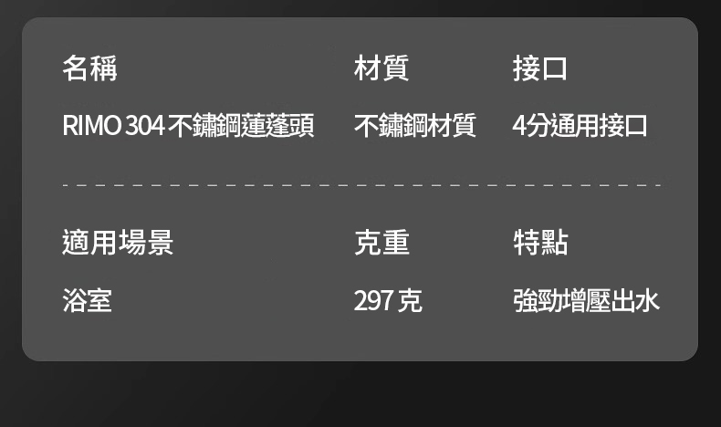 4分鐘前RIMO 304不鏽鋼增壓蓮蓬頭 - RIMO 304不鏽鋼增壓蓮蓬頭(獨享一入組)NT$899